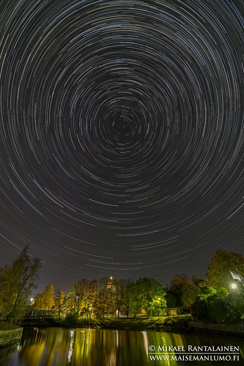 Marraskuun lopussa julkaistussa Luonto Tiede -lehdessä (8/2025) on Aada Färdingin kirjoittama ”Tuliketun hännillä” -juttu revontulista ja revontulien kuvaamisesta. Aada haastatteli minua tätä juttua varten Revontulien kuvaamisesta, ja erityisesti kerroin kuvausreissuistani pääkapunkiseudulla. Kävimme yhdellä kuvausretkelläkin Suomenlinnassa, mutta valitettavasti sillä retkellä ei näkynyt revontulia. Revontulia odotellessani kuvasin star trail -kuvan, missä tähdet näyttää pyörivän Suomenlinnan kirkon yllä (kuva on ohessa, kuvan kuvaustietot ovat: kuvausaika oli 1 tunti 32 min, tähde on yhdistetty 323 kuvasta (14 mm, ISO 800, f/5,6 ja 15 sekuntia) ja etulala on yhdistetty kolmesta kuvasta (14 mm, ISO 800, f/5,6 ja exposure blend (10, 5 ja 2 sekuntia)).